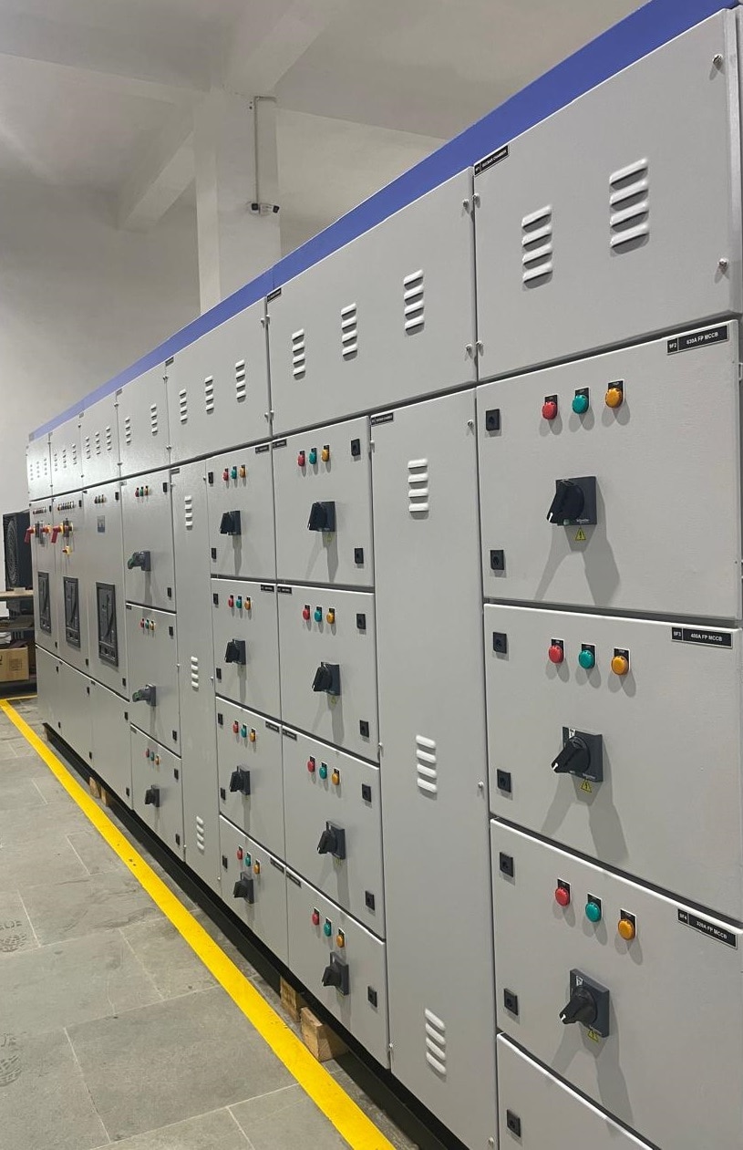 PCC Panel Manufacturer POWER CONTROL CENTER PANELS (PCC PANELS) OLAR ELECTRICAL PRIVATE LIMITED SPECIALIZES IN THE DESIGN AND MANUFACTURE OF HIGH PERFORMANCE POWER CONTROL CENTER PANELS. OUR PCC PANELS SERVE AS THE CENTRAL HUB FOR ELECTRICAL DISTRIBUTION IN LARGE SCALE INDUSTRIAL AND COMMERCIAL FACILITIES. ENGINEERED FOR DURABILITY AND EFFICIENCY, THESE MODULAR UNITS PROVIDE PRECISE CONTROL OVER POWER SUPPLY TO HEAVY MACHINERY, MOTORS, AND TRANSFORMERS. KEY FEATURES AND FUNCTIONALITIES OUR PCC PANELS ARE BUILT TO MANAGE COMPLEX ELECTRICAL DEMANDS WITH FEATURES INCLUDING: VERSATILE CONFIGURATION: SINGLE OR MULTIPLE INCOMERS WITH BUS COUPLERS FEATURING BOTH ELECTRICAL AND MECHANICAL INTERLOCKING FOR ENHANCED SAFETY. ADVANCED MONITORING: INTEGRATED PROTECTIVE RELAYS, METERS, AND INDICATION LAMPS AS PER CUSTOMER SPECIFICATION. CUSTOM DESIGN OPTIONS: CHOICE OF TOP, MIDDLE, OR HORIZONTAL BUS BAR CHAMBERS WITH ALUMINUM OR COPPER BUS BARS. FLEXIBLE TERMINATION: SUPPORTS TOP, BOTTOM, FRONT, OR REAR CABLE TERMINATIONS. POWER OPTIMIZATION: PROVISIONS FOR AUTOMATIC POWER FACTOR CORRECTION (APFC) INTEGRATION. SMART POWER MANAGEMENT: DG INCOMER CAPABILITIES WITH AMF FUNCTIONS AND AUTOMATIC CUT-OFF FOR NON-ESSENTIAL FEEDERS DURING MAINS FAILURE. TECHNICAL SPECIFICATIONS CONSTRUCTION AND STRUCTURE MODULAR OR NON-COMPARTMENTALIZED DESIGNS CONSTRUCTED FROM MS CRCA OR STAINLESS STEEL. SUITABLE FOR BOTH INDOOR AND OUTDOOR INSTALLATIONS WITH SINGLE OR DOUBLE FRONT OPERATION. SCALABLE ARCHITECTURE TO ALLOW FOR FUTURE EXPANSION. SUPERIOR SEALING WITH RUBBER GASKETS TO MEET IP RATINGS RANGING FROM IP-42 TO IP-65. EFFICIENT THERMAL MANAGEMENT VIA EXHAUST FANS OR LOUVERS. SURFACE TREATMENT AND FINISHING RIGOROUS THREE-TANK OR SEVEN-TANK PRE-TREATMENT PROCESSES. FINISHING OPTIONS INCLUDE SYNTHETIC ENAMEL, EPOXY-BASED PRIMER, OR HIGH-QUALITY POWDER COATING IN CUSTOM SHADES. BUS BAR AND WIRING STANDARDS HIGH-GRADE COPPER OR ALUMINUM BUS BARS SUPPORTED BY SMC OR DMC INSULATORS. BUS BAR SYSTEMS DESIGNED FOR OPTIMUM FAULT LEVEL WITHSTAND CAPACITY AND TEMPERATURE CONTROL ACCORDING TO IS 8623 STANDARDS. INTERNAL WIRING UTILIZING 660/1100V GRADE PVC COATED STRANDED COPPER FLEXIBLE WIRES WITH SECURE CRIMPING LUGS. QUALITY ASSURANCE AT OLAR ELECTRICAL PRIVATE LIMITED, WE ADHERE TO STRICT QUALITY CONTROL PROTOCOLS. EVERY PANEL UNDERGOES DETAILED INSPECTION FOR DIMENSIONAL ACCURACY AGAINST APPROVED G.A. DRAWINGS AND RIGOROUS TESTING OF PAINT AND POWDER COATING DURABILITY.